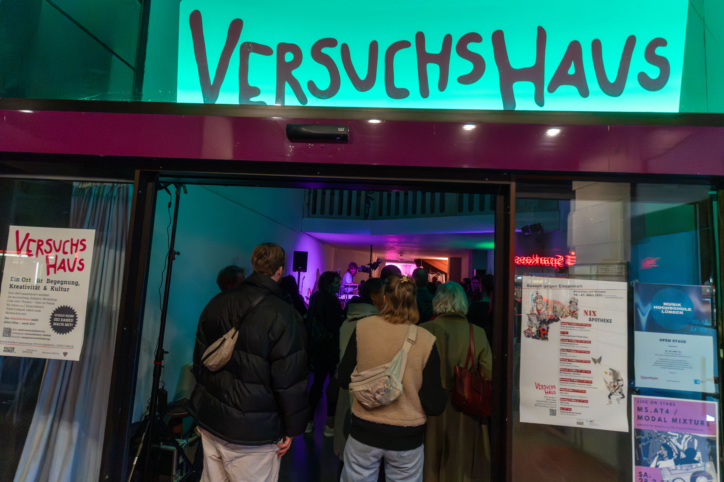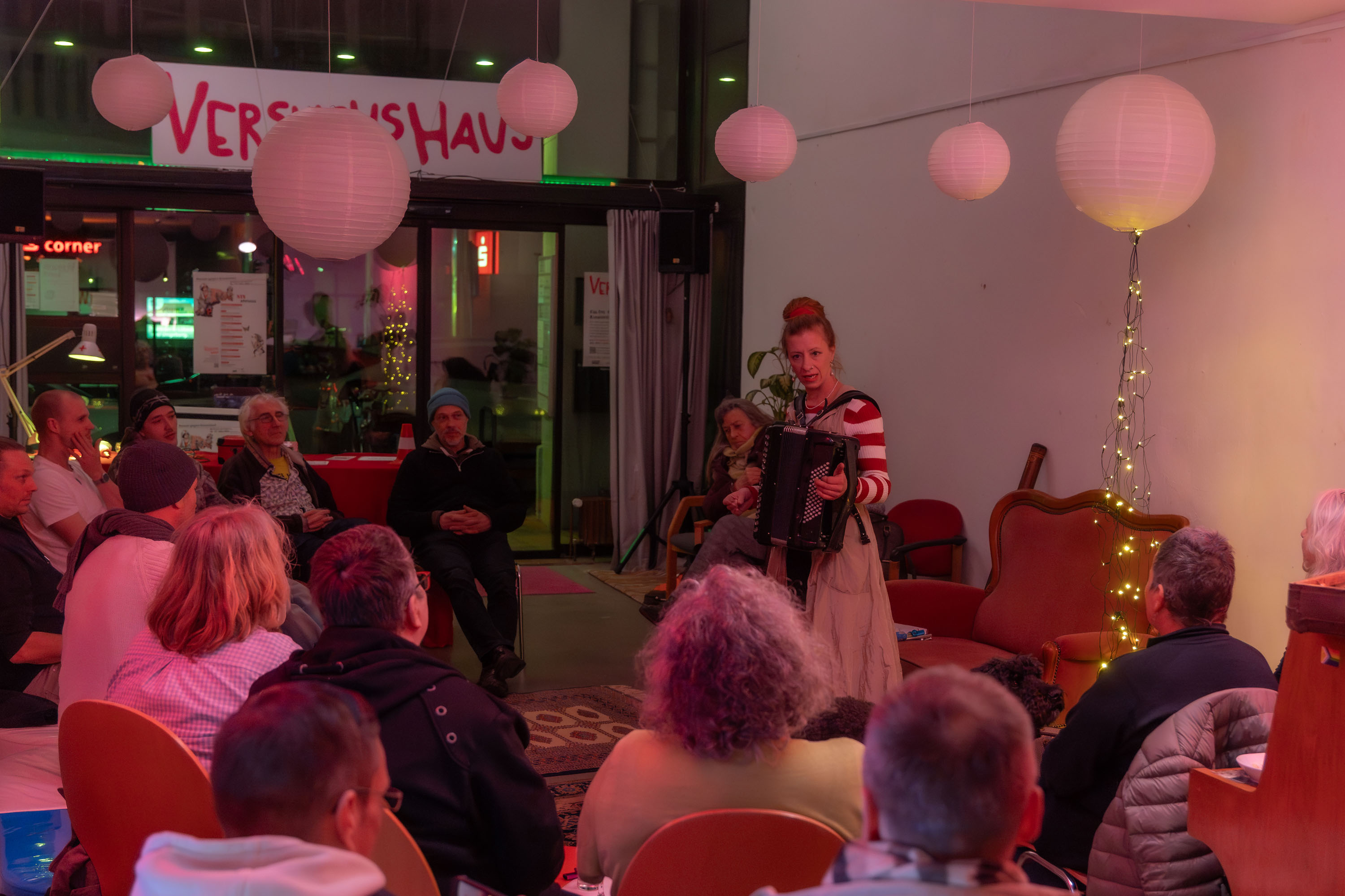 Das VersuchsHaus ist ein Ort für Bilder an Wänden, für Klänge im Raum, für Gespräche, die sonst keinen Platz finden. Es ist gedacht als Bühne für Kunst und Kultur – als offenes Fenster zur Stadt, durch das Neues sichtbar und erlebbar wird.