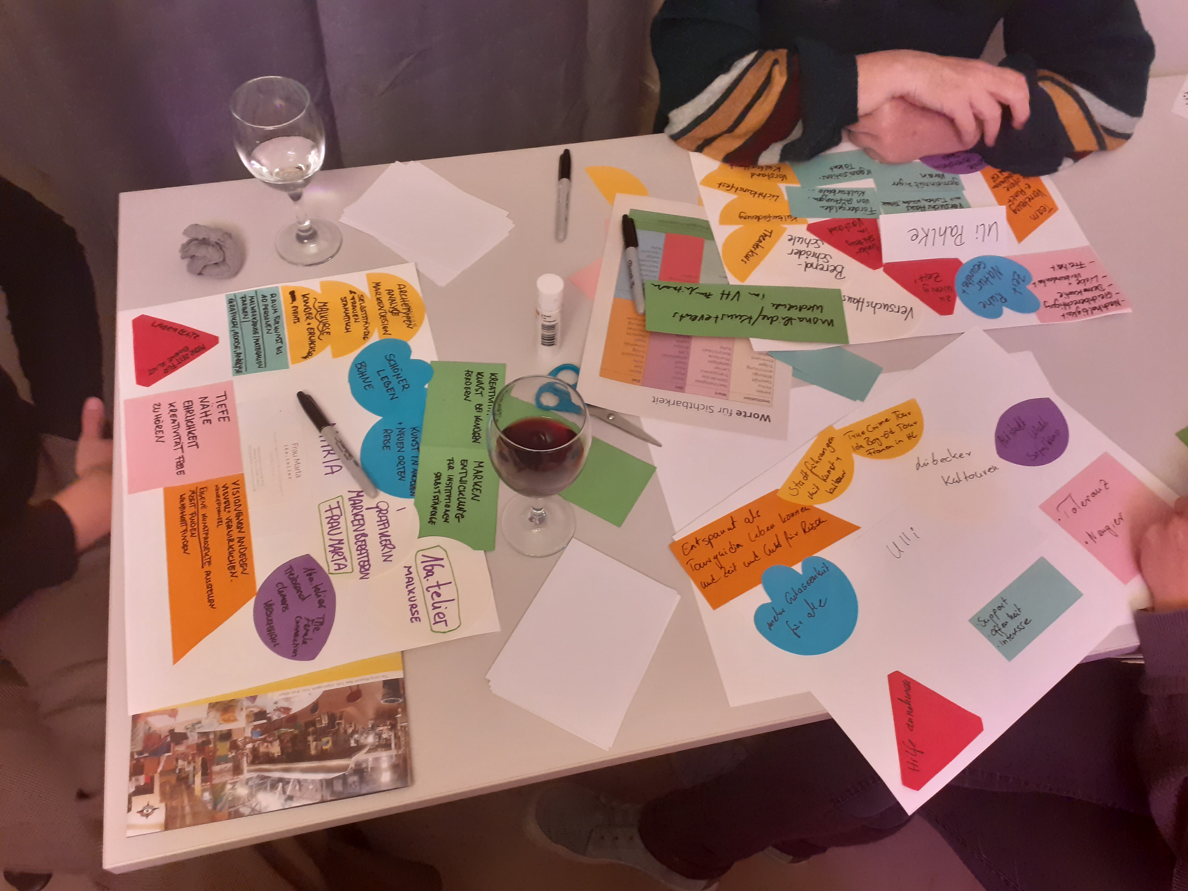 - bring gern einen Snack, Visitenkarten oder Infoblätter über deine Arbeit mit